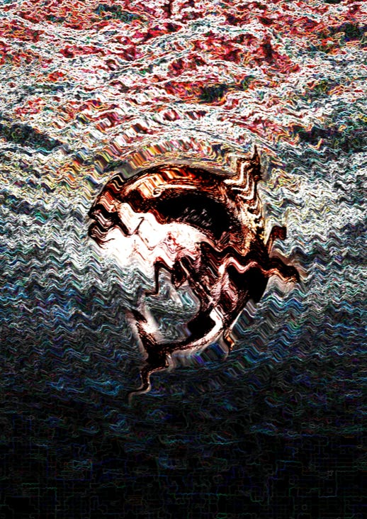 The green hue evokes both vitality and artificiality — a tone balanced between nature and screenlight, between genuine thought and digital void.